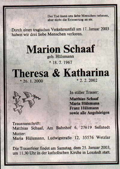 Marion Schaaf (geb. Hülsmann) 18.07.1967 - 17.01.2003